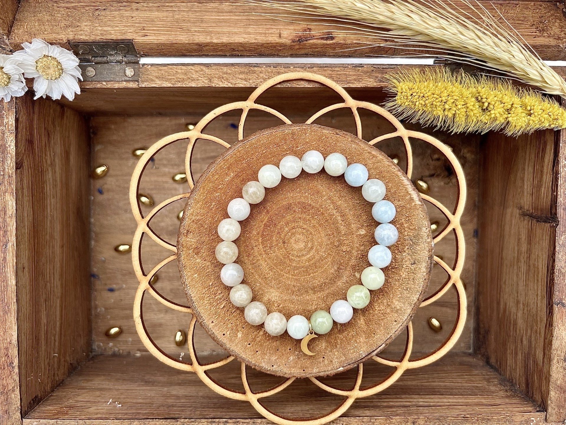 Bracelet en pierre d'Aigue-Marine avec Breloque (8mm)