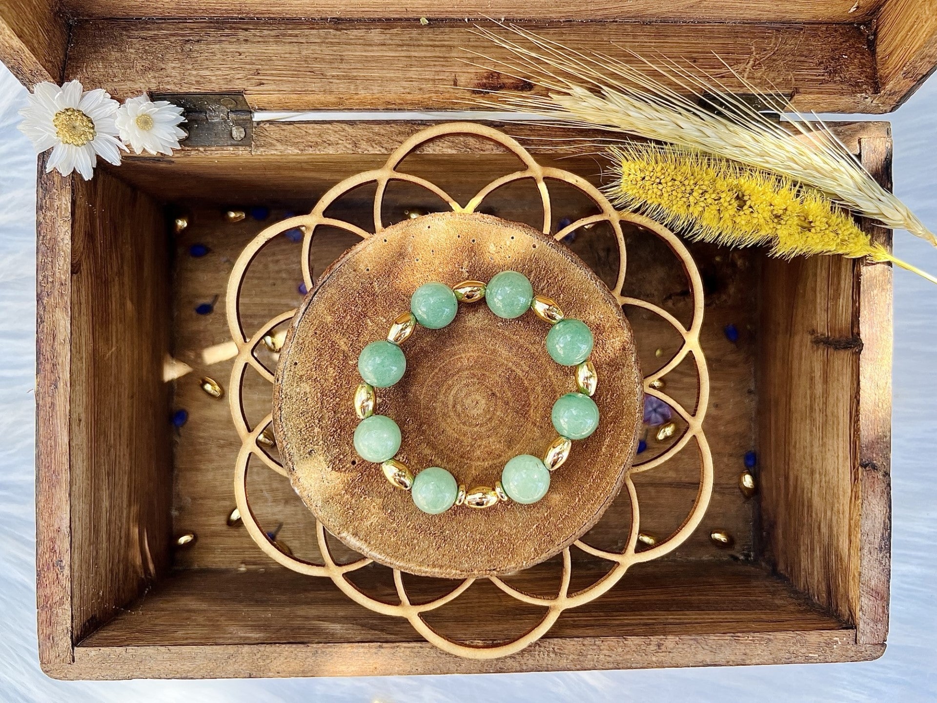 Bracelet en pierre d'Aventurine avec déco (12mm)