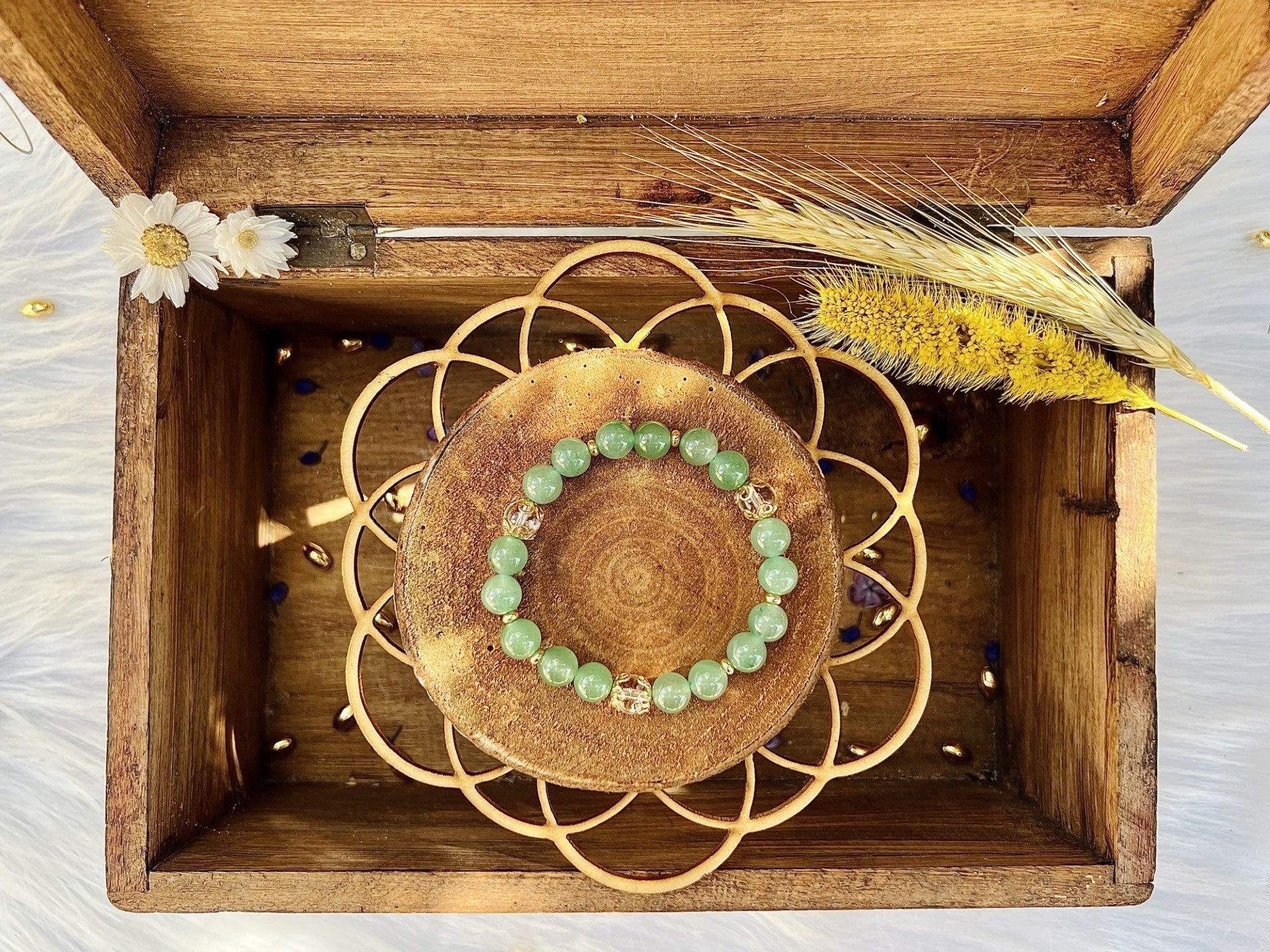 Bracelet en pierre d'Aventurine avec déco (8mm)
