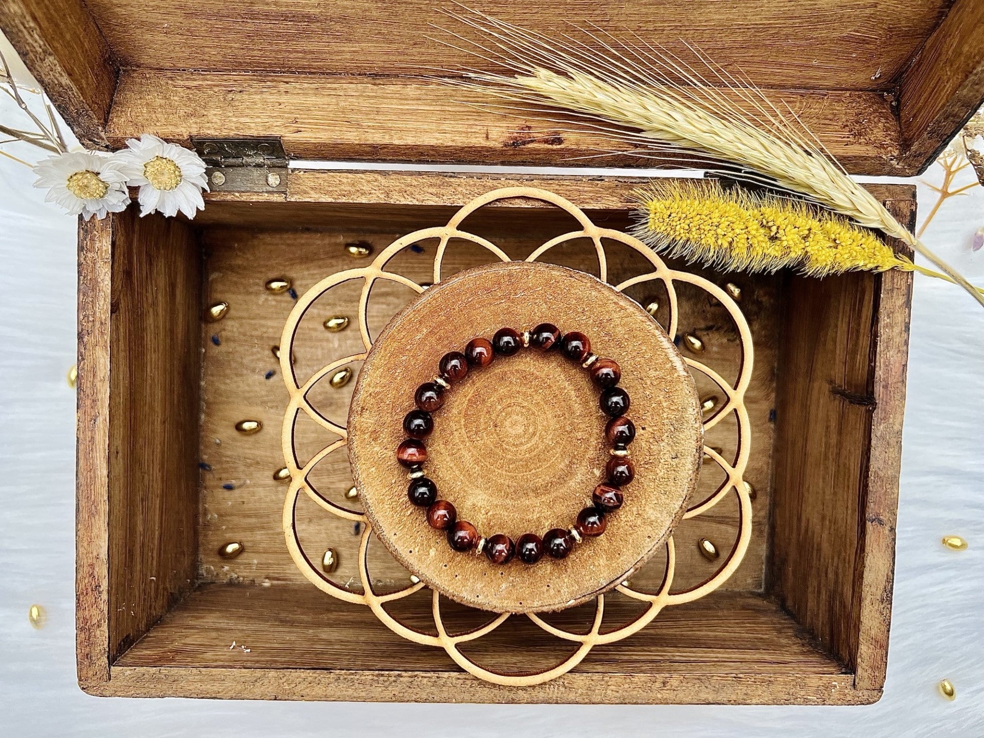 Bracelet en pierre d'Œil De Taureau avec déco (8mm)